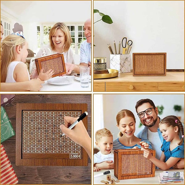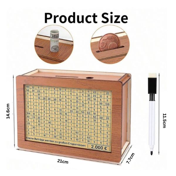 Postavite svoju COINSAVE kutiju za novac za nekoliko minuta! Priloženi marker i listići za štednju olakšavaju personalizaciju. To je elegantan dizajn koji se besprekorno uklapa u vaš dom ili kancelariju.