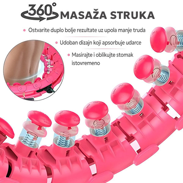 Sa magnetnim segmentima za povezivanje i masažnim glavama od 360°, hulahop ostaje bezbedno na mestu, što ga čini idealnim fitnes alatom čak i za početnike.